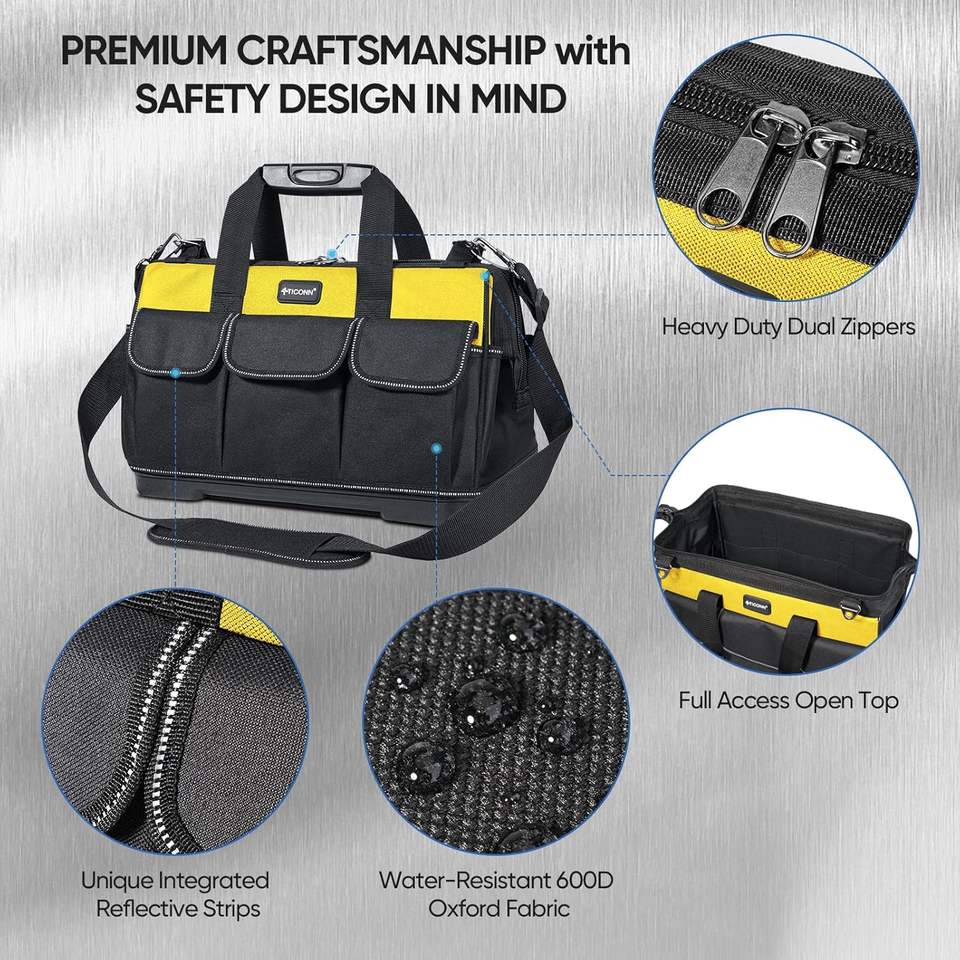 Free sample Factory price heavy-duty, 21-pocketed, hand-open top tool organizer bag for electricians of China