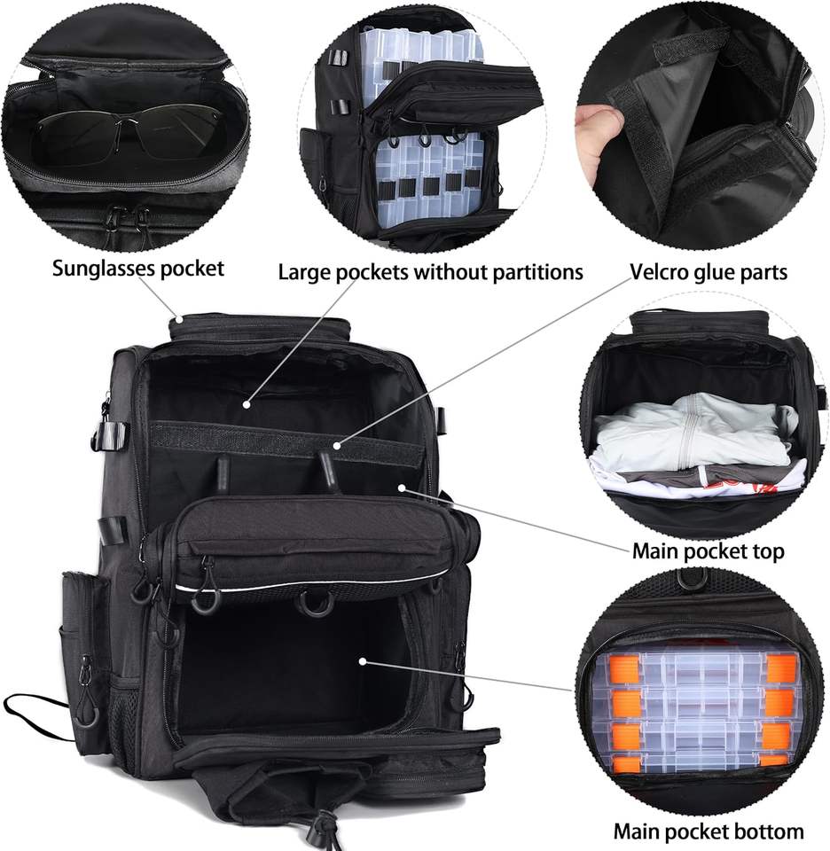 Free sample Fishing Backpack Tackle Box,Fishing Backpack, Multi-Pocket Fishing Bag with Fishing Rod Holder, Water Resistant