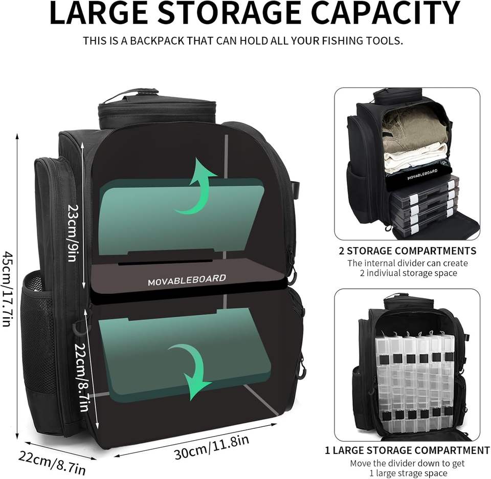 Free sample Fishing Backpack with 4 Tackle Boxes, Fishing Tackle Backpack with Rod Holders, 45L 600D Large Fishing Bag