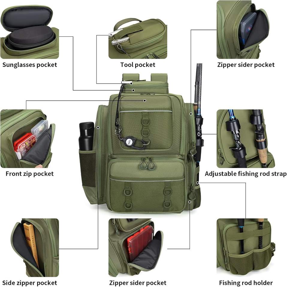 Free Sample Polyester Fishing Tackle Backpack 4 Tackle Boxes Rod Holders Waterproof Rain Cover 20-30L Capacity Fishing