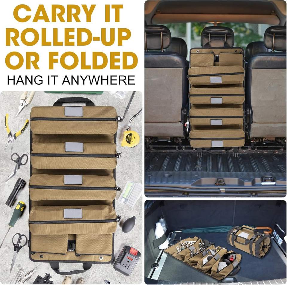Free sample Folding outdoor organizer for men kit hand electrician bag wholesale with pockets small carpenter roll up tool bags