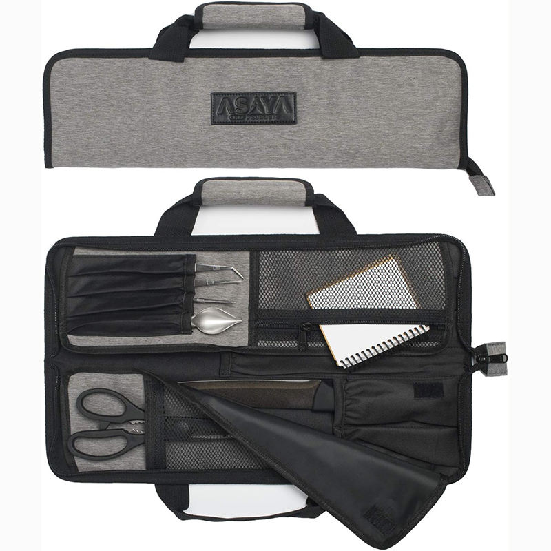 Free sample Handmade Waxed Canvas Chef Knife Roll - 15 Knife Slots Card Holder and Zippered Pocket Genuine Leather