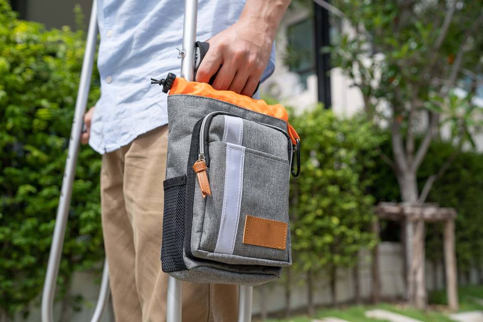 Free sample Hot Sell Taiwan Pearl Coated Crutch bag Premium Water Resistant Hanging Zip Storage Pouch Crutch Bag Bottle Holder