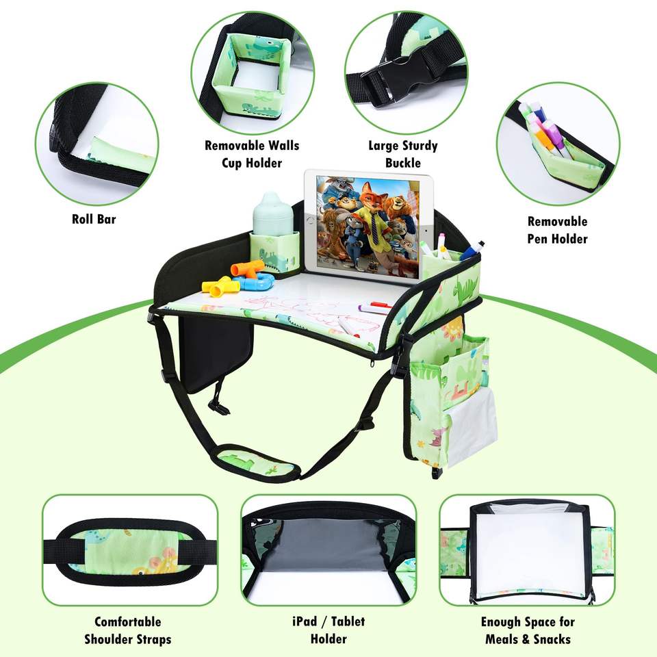 Free sample Kids Travel Tray Travel Tray for Kid Toddler Road Trip Essentials with Drawing Kit Car Seat Trays for Toddler Black