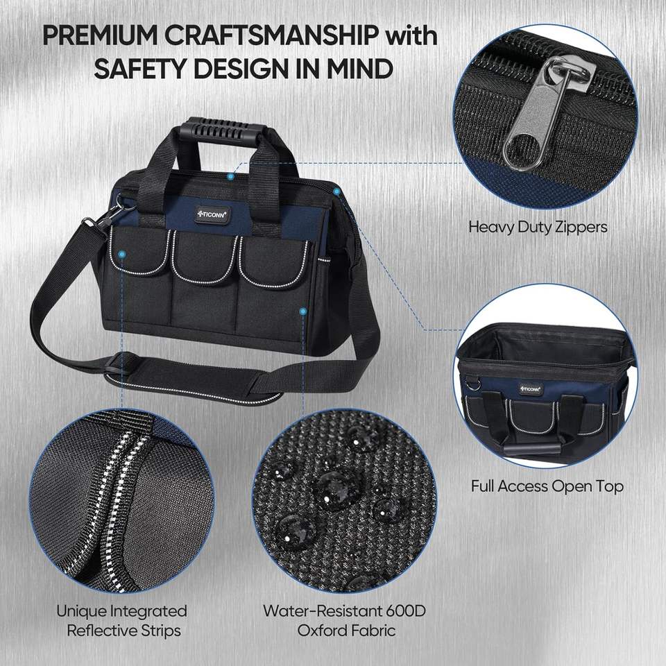 Free sample Manufacturing Heavy-Duty 21-Pocket Tool Storage Caddy Hand-Open Top Tool Organizer Bag for Electricians