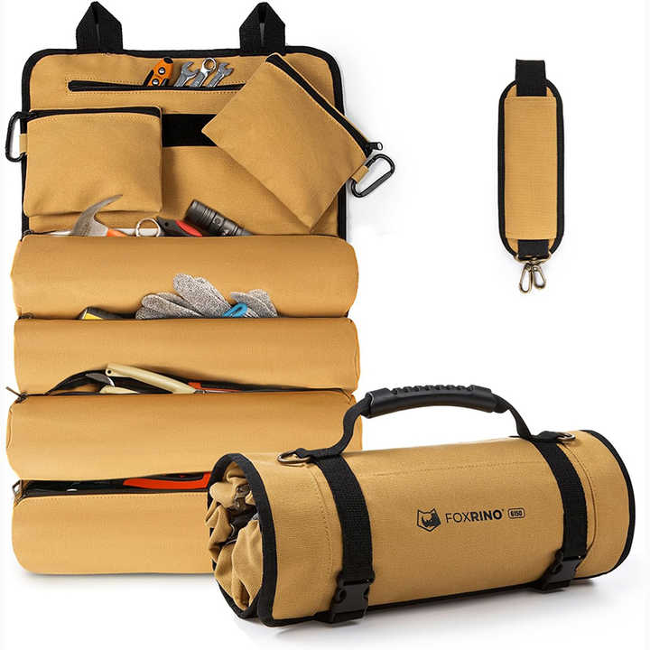 Free sample Multi Purpose Easy to Roll OEM Hanging Tool Zipper Carrier Tote Car Canvas Tool Organizer Bucket Tool Roll up Bag