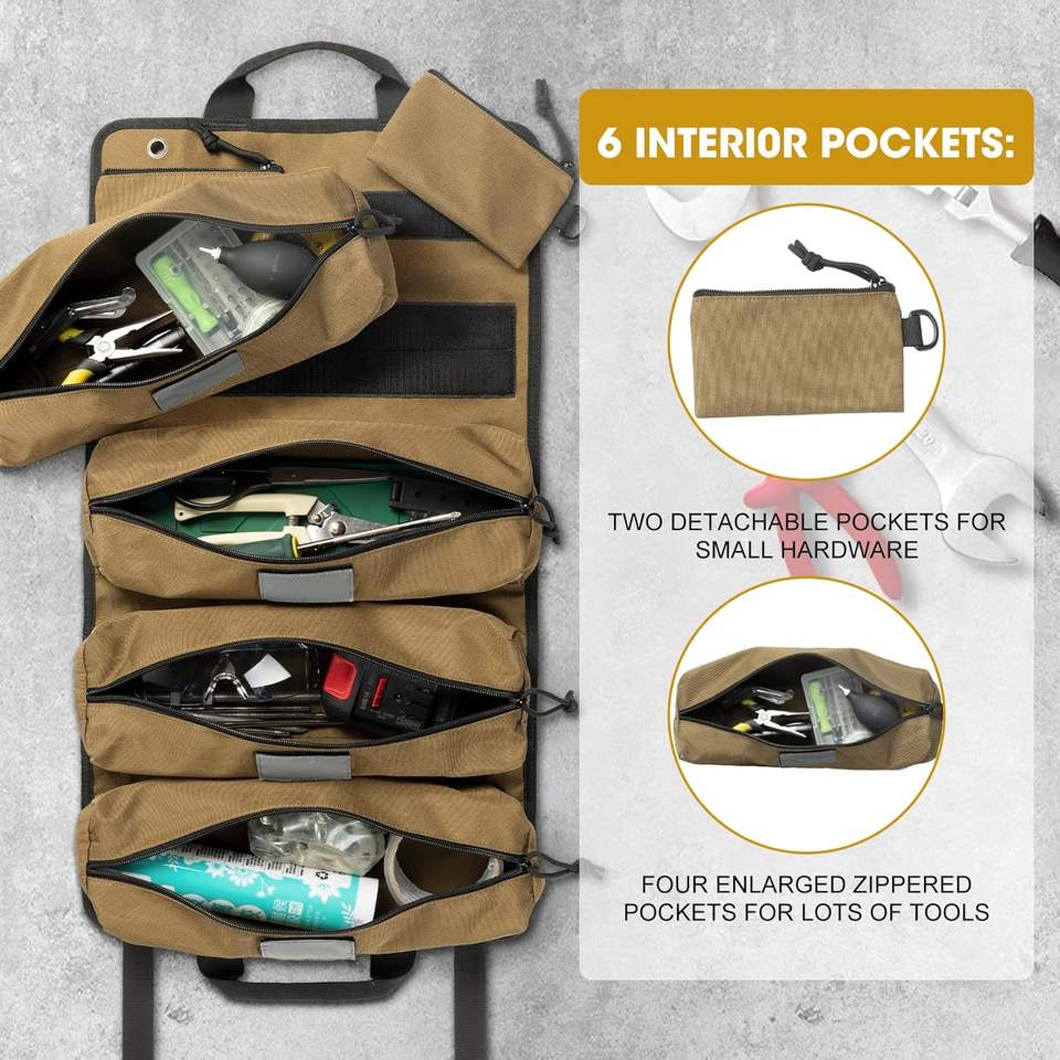Free sample Multi-Purpose Roll up Tool Bag Canvas Tool Pouch Storage Organizer Portable Electrician Tool Bag With Handle