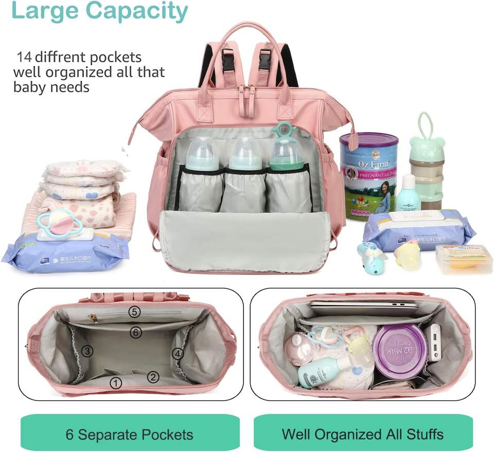 Free sample Multipurpose Waterproof Travel Backpack for Unisex Diaper Bags with Pacifier Case for Babies
