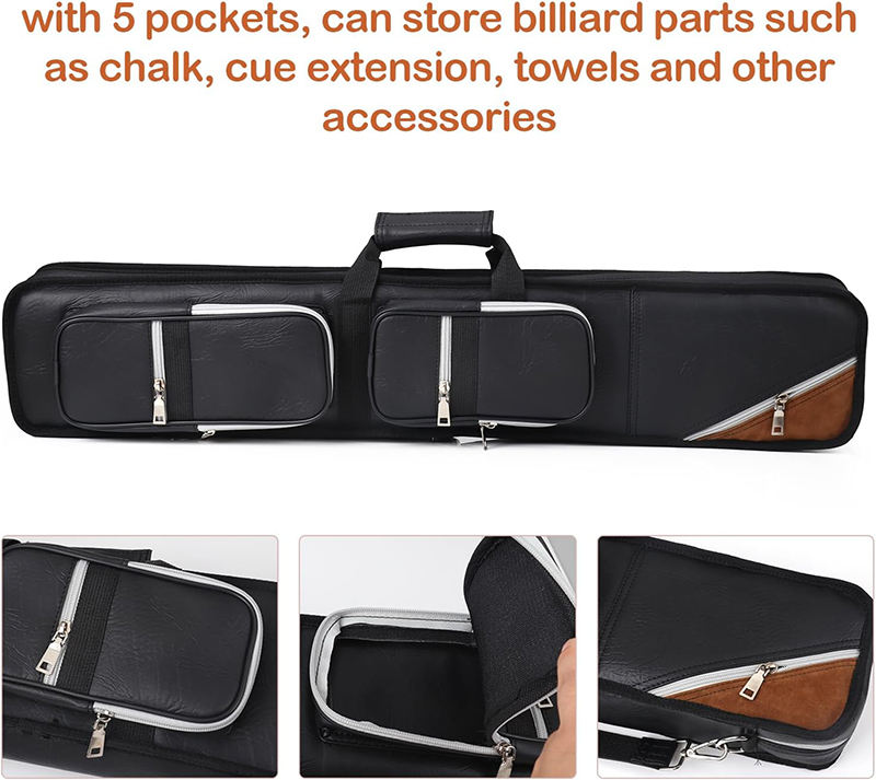 Free sample Pool Cue Case, Pool Stick Case 4x5 with Multiple Pockets Holds 4 Butts 5 Shafts, Soft Padded Sturdy Pool Cue Bag