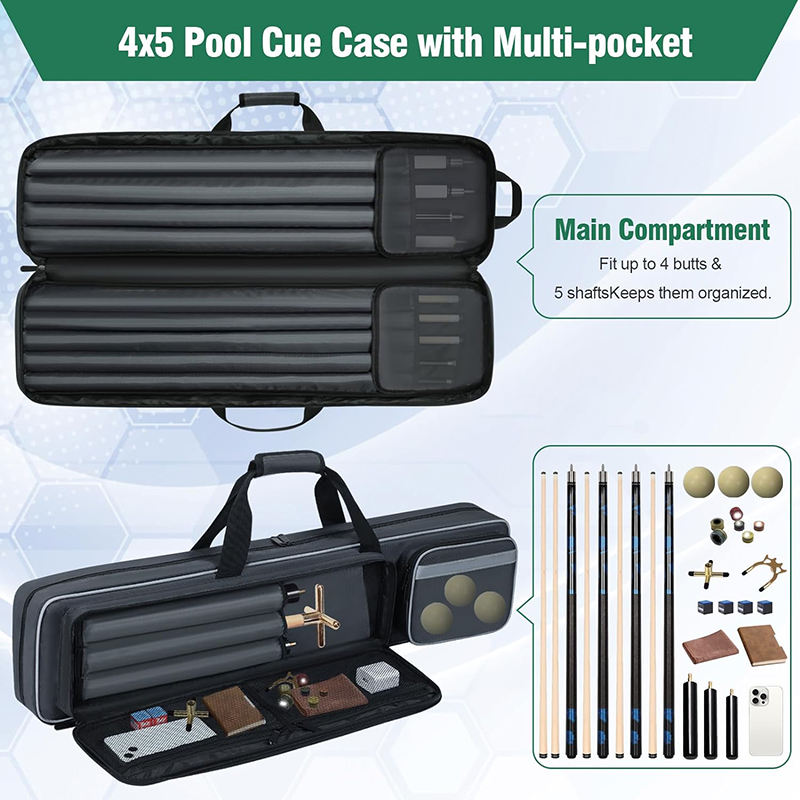Free sample Pool Stick Carrying Case Holds 4 Butts and 5 Shafts, Billiard Cue Bag with 14Pockets and Shoulder Straps