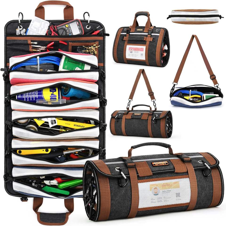 Free sample Portable Professional Multi Pocket Hardware Tools Pouch Roll up Hanging Wrench Roll Organizer Bag