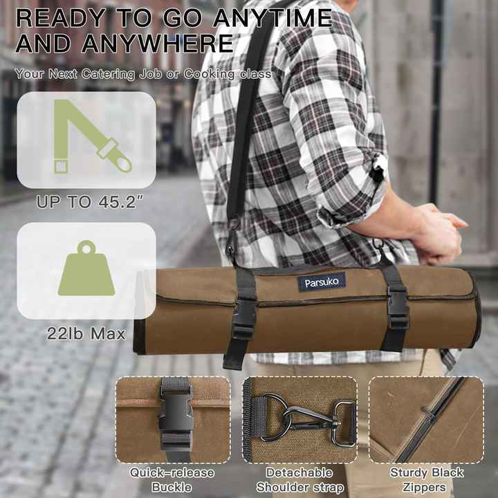 Free sample Professional Chef Knife Roll Bag Waterproof Waxed Canvas Case with Adjustable Strap Special Purpose Bags