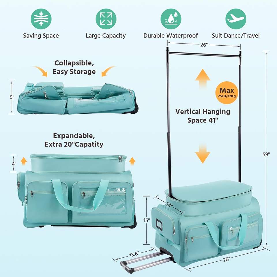Free sample Roller Kids Ballet Competition Travel Duffle Dance Garment Bags with Garment Rack Waterproof Luggage Trolley