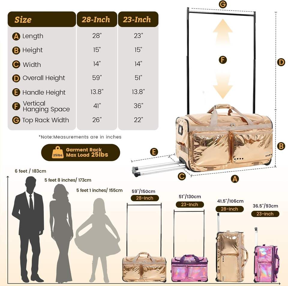 Free sample Rolling Upright Luggage Dance Bags with Garment Rack Dance Trolley Bag and Duffel-Travel Costume Rack