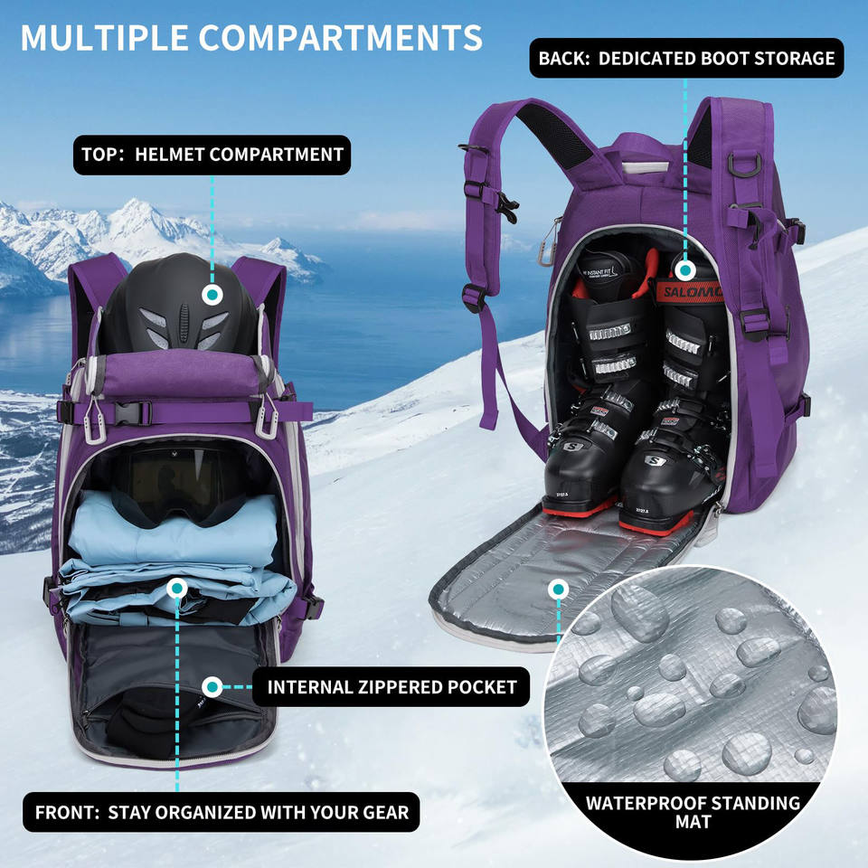 Free sample Ski Boot Bag 50L Outdoor BSCI Factory Custom Sports Ski Backpacks Large Capacity 50L Travel Ski Boot Bag Backpack