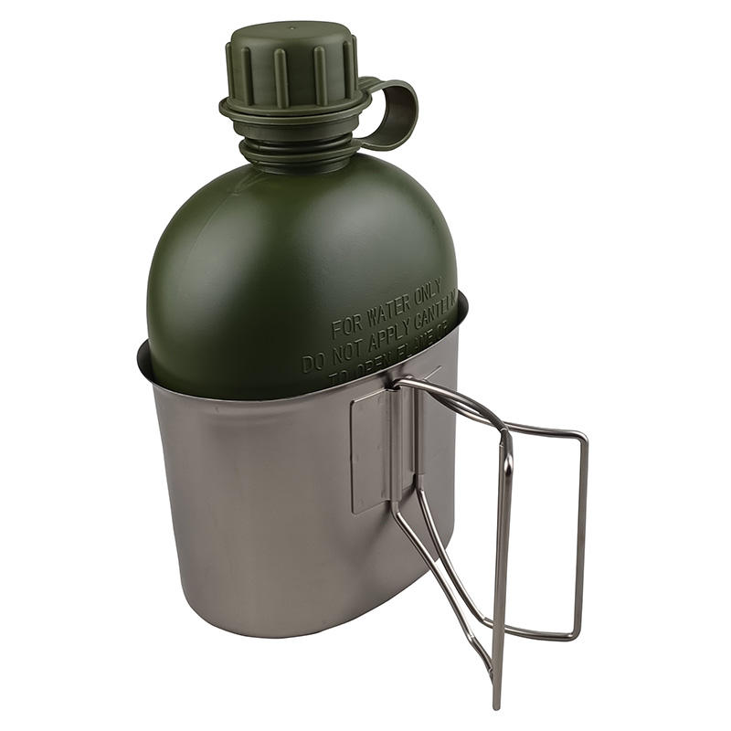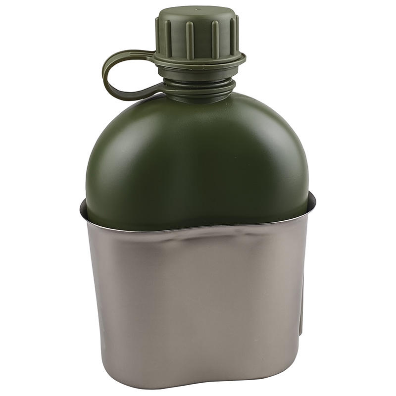 Free sample Top-Grade Aluminum 1-Litre Drinking Tactical Water Cateen with Green and Black Camouflage Cover