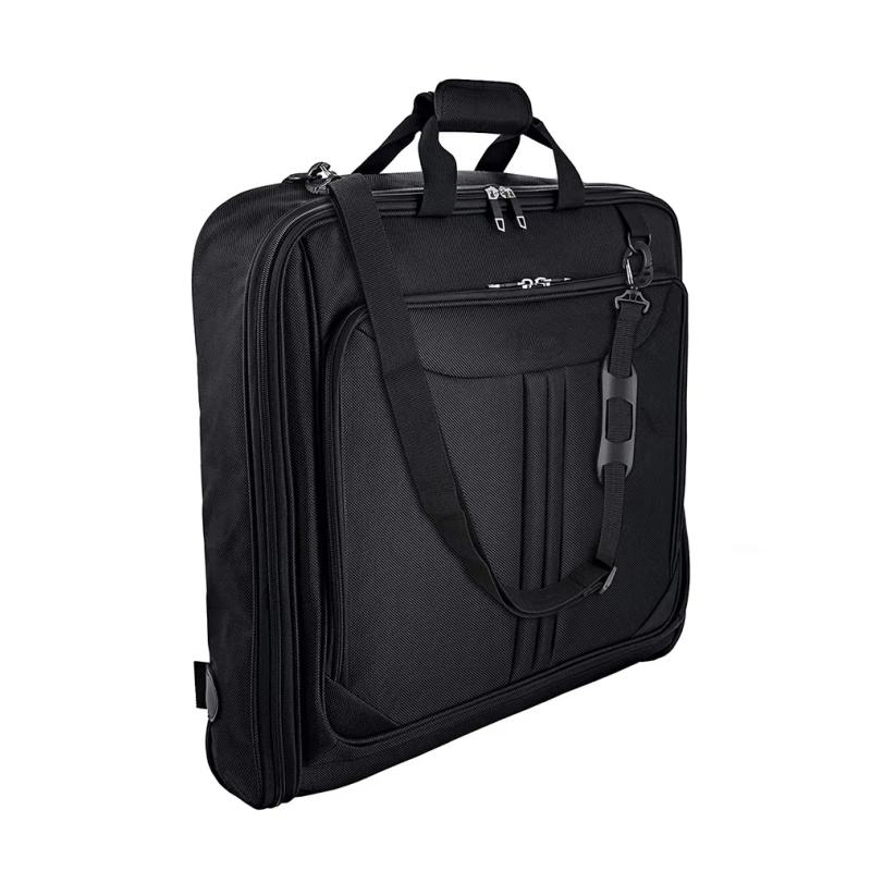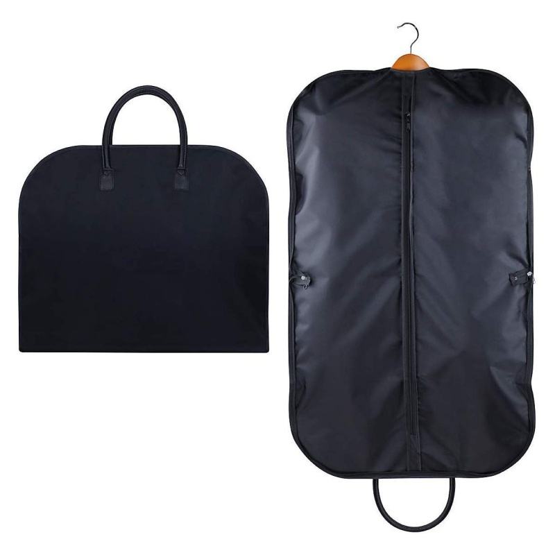 Free sample Travel business black suit clothing hanging garment bags with pockets, made to order from a Chinese manufacturer