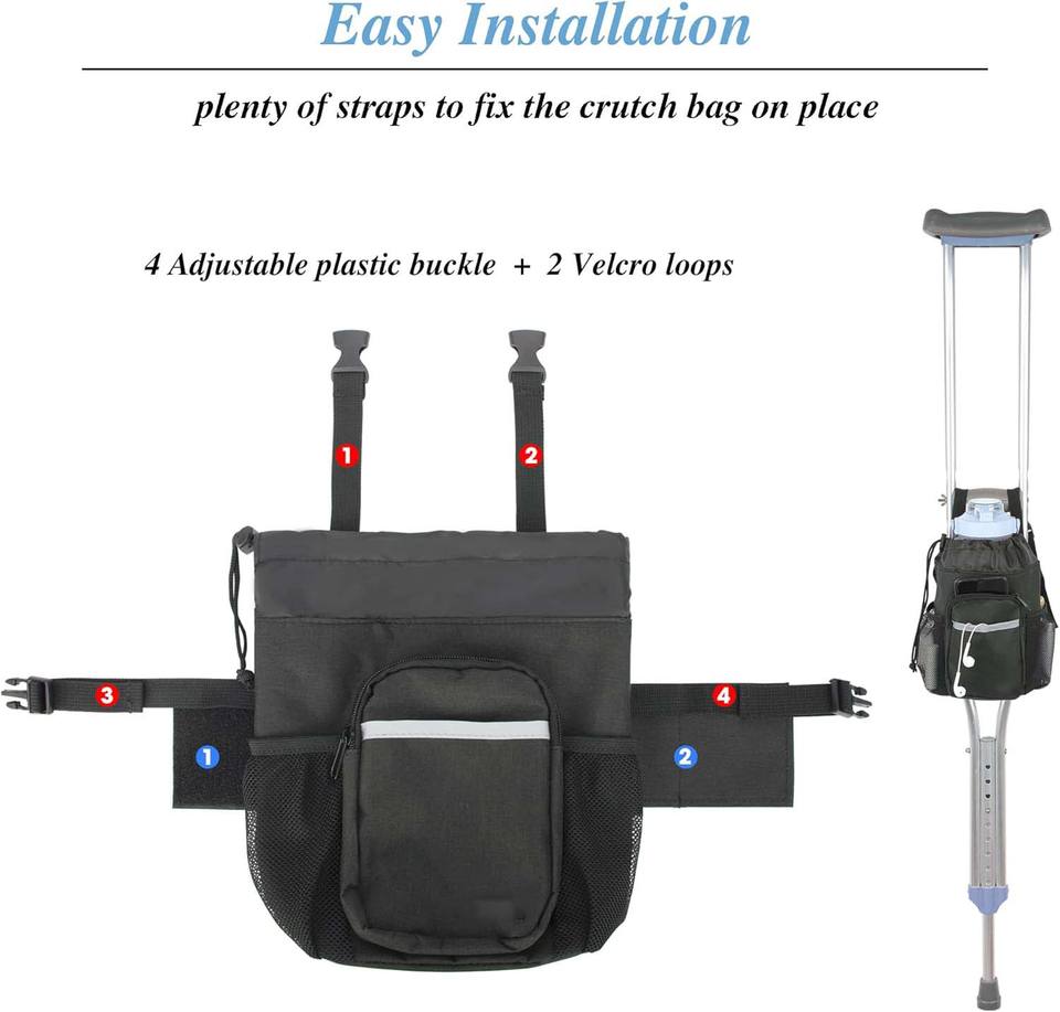 Free sample Universal Accessories Walker Rollator Bag Carry Pouch Crutch Pouch Reflective Zipper Pocket Universal Crutch Bag