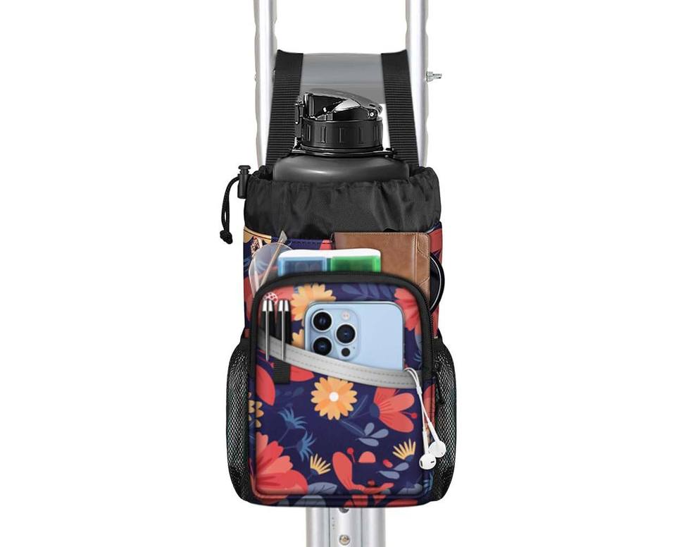 Free sample Water-Resistant Storage Organizer Crutch Accessories Bag with Drink Holder and Zipper Pouch for Crutches