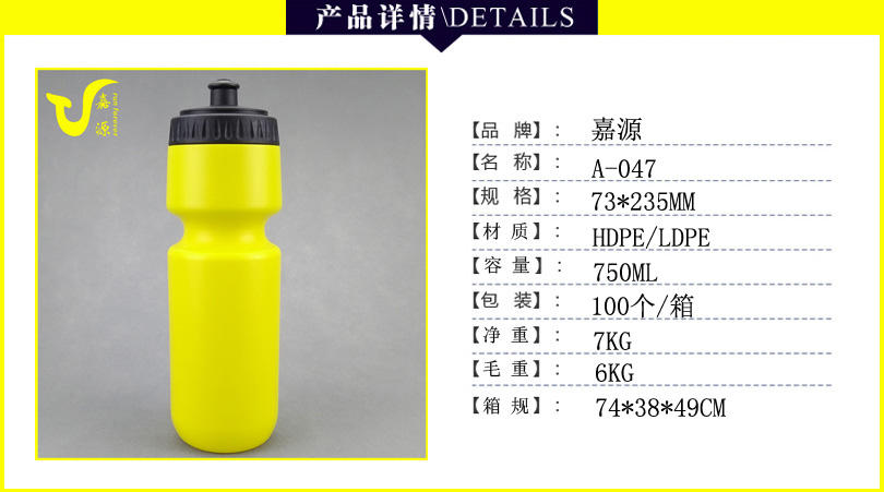 Free sample popular selling PE Sports Bottle Outdoor Mountain Road Cycling Sports Water Bottle, 750ml Squeezable