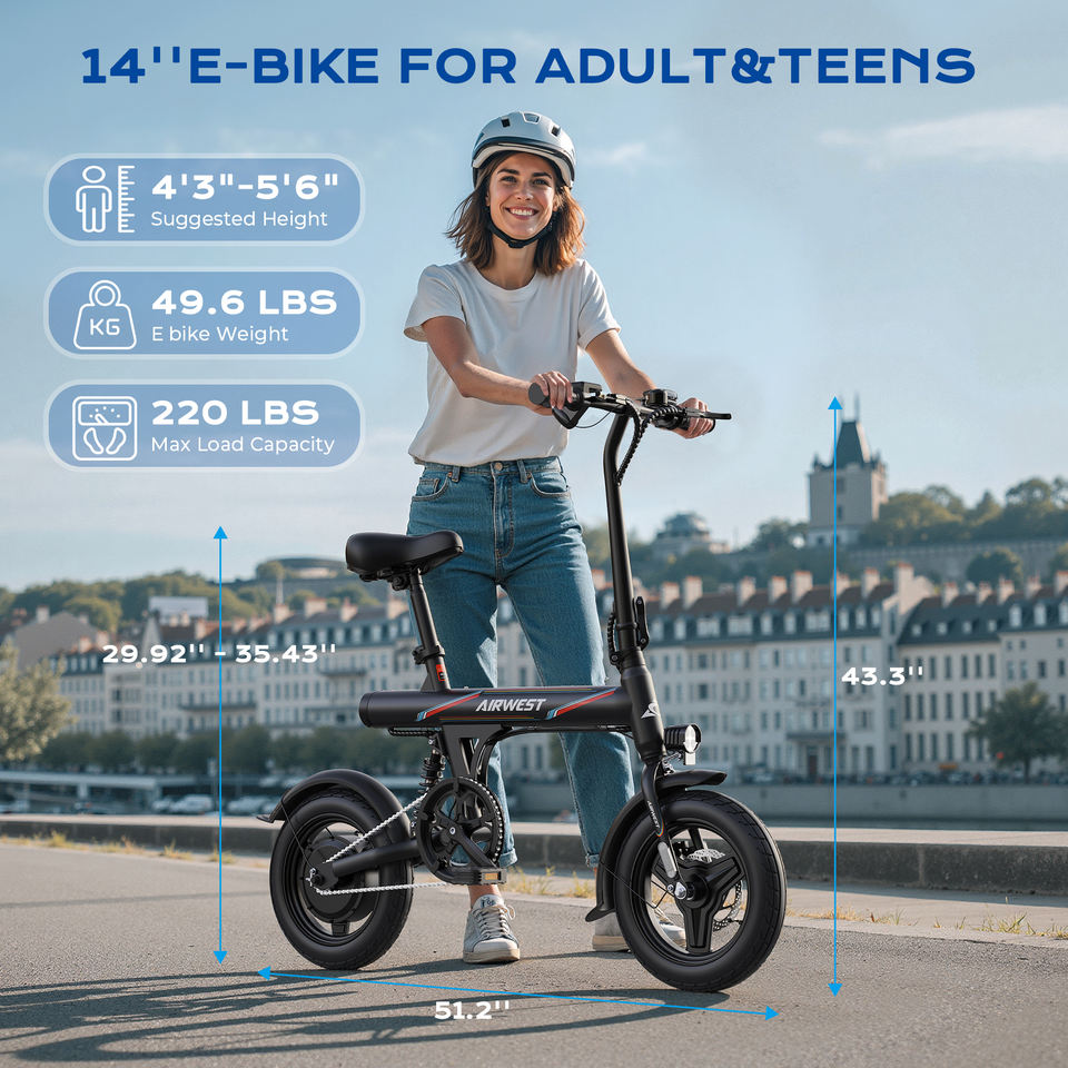 Free shipping14" Mini Electric Bike 350W Folding Rear Suspension 32km/h Commute for Adults Lithium Battery for City Park