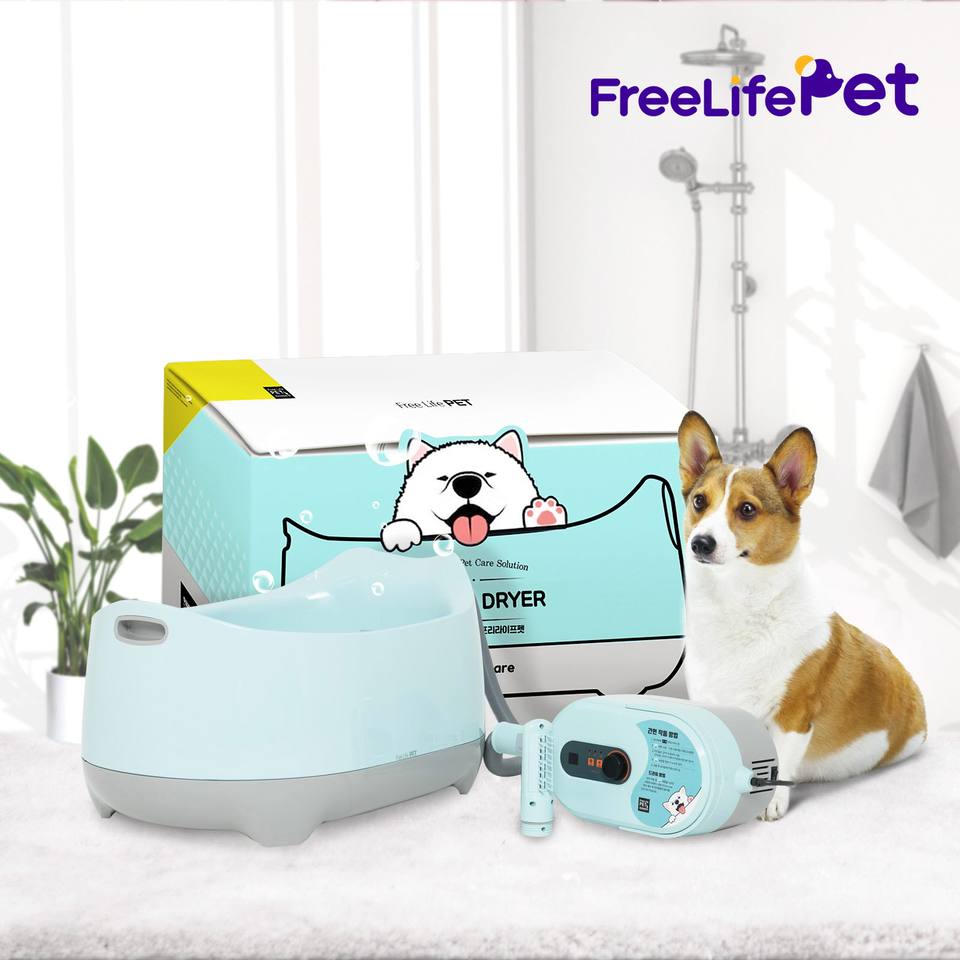 FreeLife Plastic Soft Dog Spa Bath Tub with Bubble Massage Dryer-All-in-One Pet Bathing System for Small Dogs Home Grooming