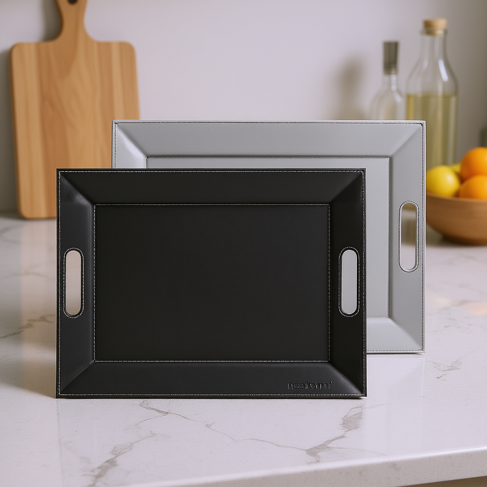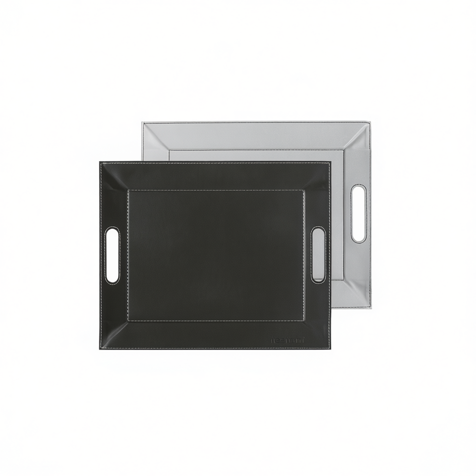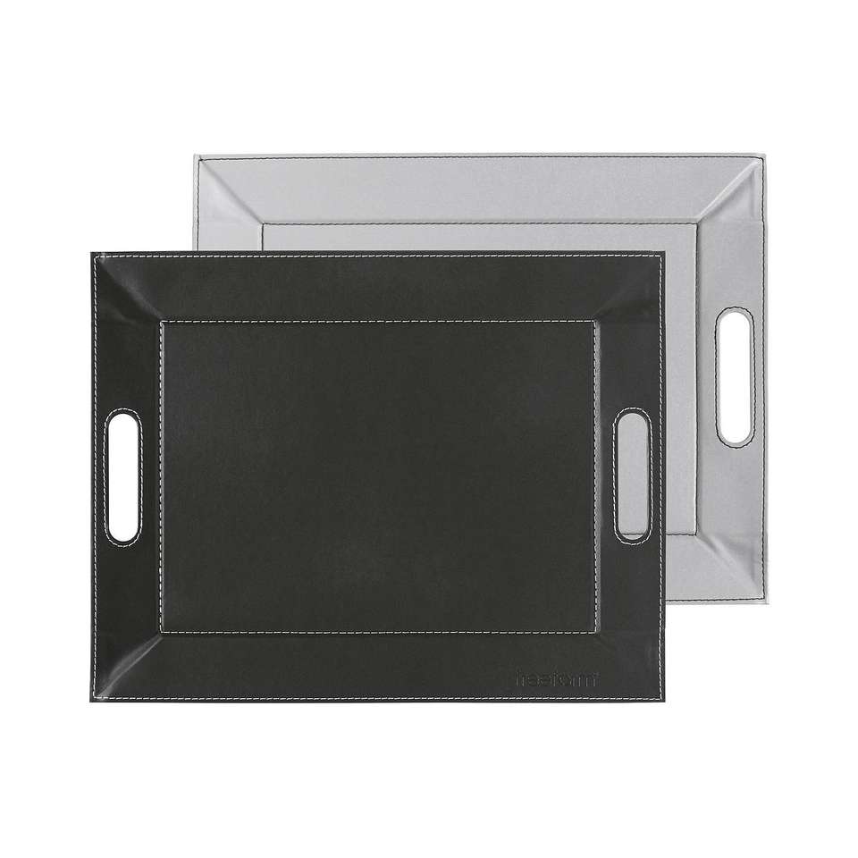 Freeform Reversible Tray Duo Storage Tray Black And Gray With Handles For Serving And Organization