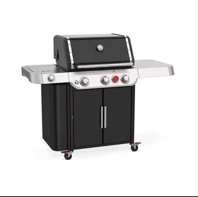 Freestanding Black E-335 Gas Griller, 513 square inches, Stainless Steel