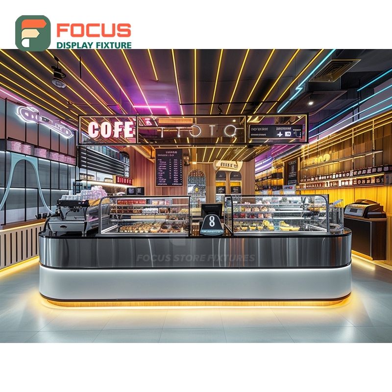 Freestanding Coffee Merchandise Display Rack Clear Glass Front Bean Display Area Roastery Product Display Rack