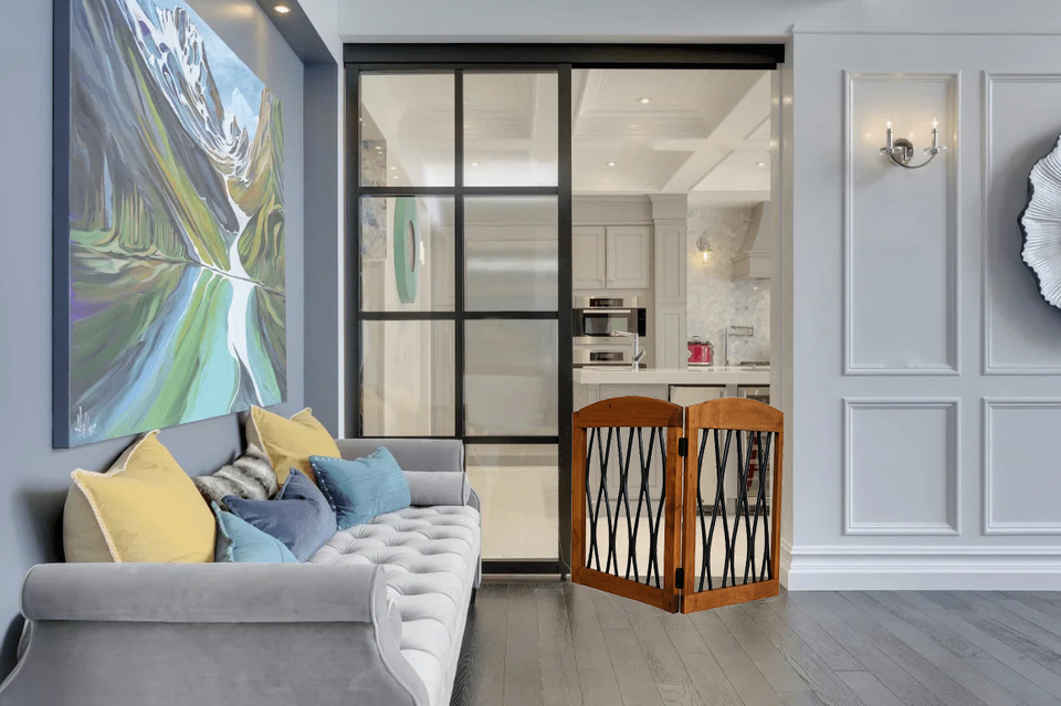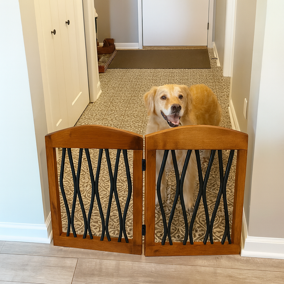 Freestanding Foldable Wooden Pet Gate for Dogs Extra Wide Indoor Barrier for Stairs Doorways Hallways