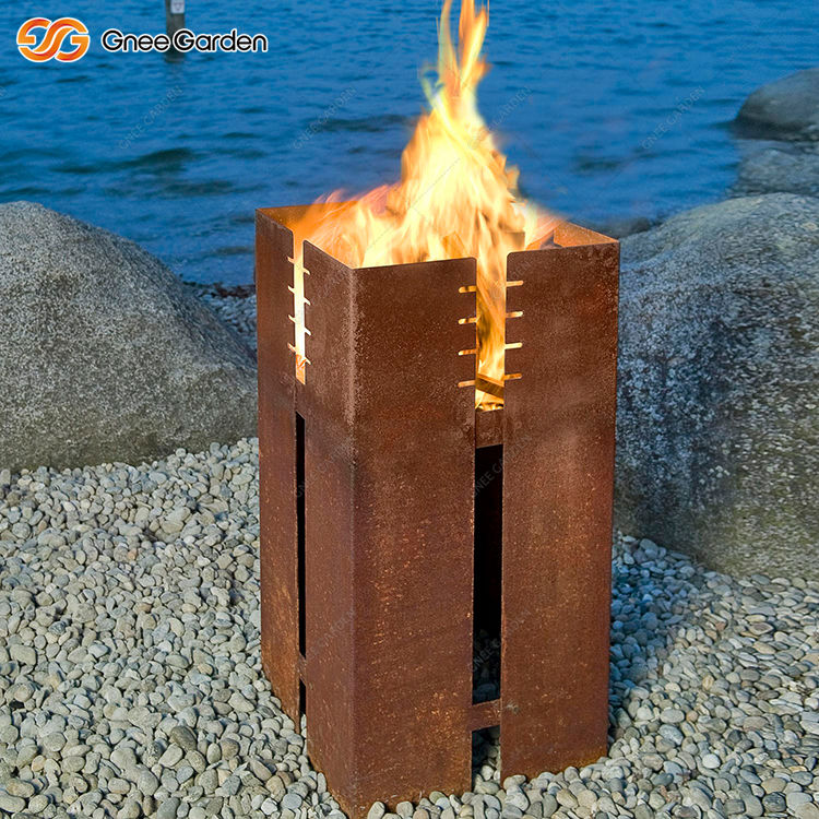 Freestanding Modern Corten Steel Firewood Fire Pit BBQ Grill with Rust Resistant Finish for Outdoor Cooking