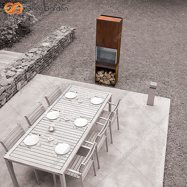 Freestanding Rustic Corten Steel Wood-Burning Fire Pit Table with Log Storage and Portable Design for Outdoor Patio Garden