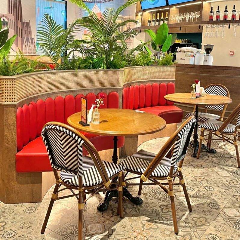 French Bistro Restaurant Rattan Chairs Set Outdoor Dining Furniture for Cafe Shop