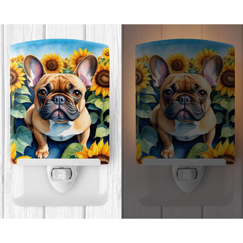 French Bulldog Sunflowers Ceramic Night Light New UL-Certified Compact 6x4x3 Multicolor for Bedroom Bathroom Hallway Kitchen