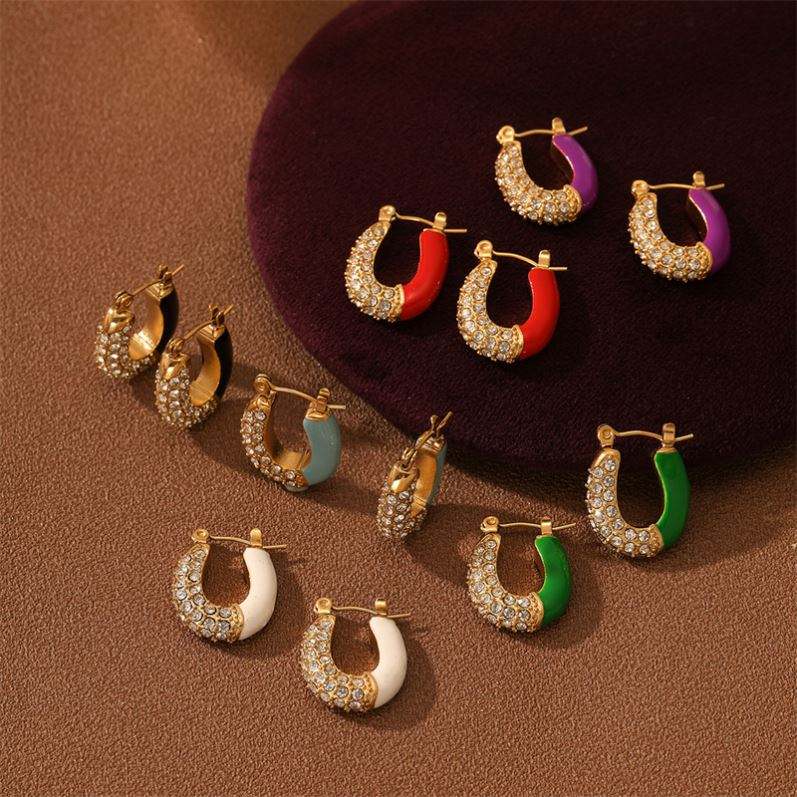 French Diamond Drop Oil Titanium Steel Earrings for Women Light LuxuryStyle Fashion Stainless Steel Earrings Gold Plated