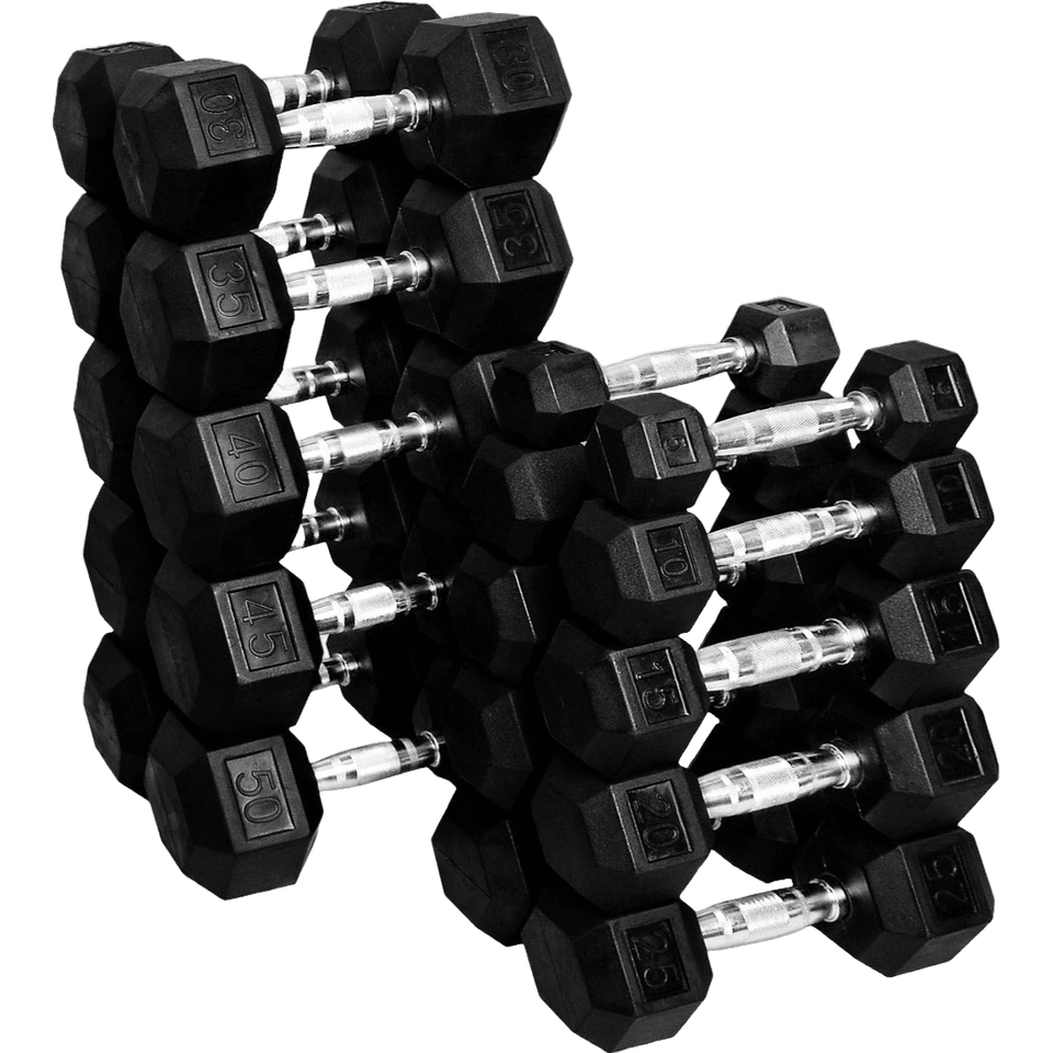 French Fitness 5-50 Lbs Hex Dumbbell Set Rubber Coated Steel and Cast Iron for Gym Strength Training Custom Logo