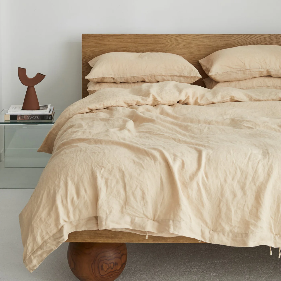 French Flax Linen Quilt Cover Set in Creme | Soft Washed Duvet Cover with Pillowcases | Breathable Bedding for Home & Hotel