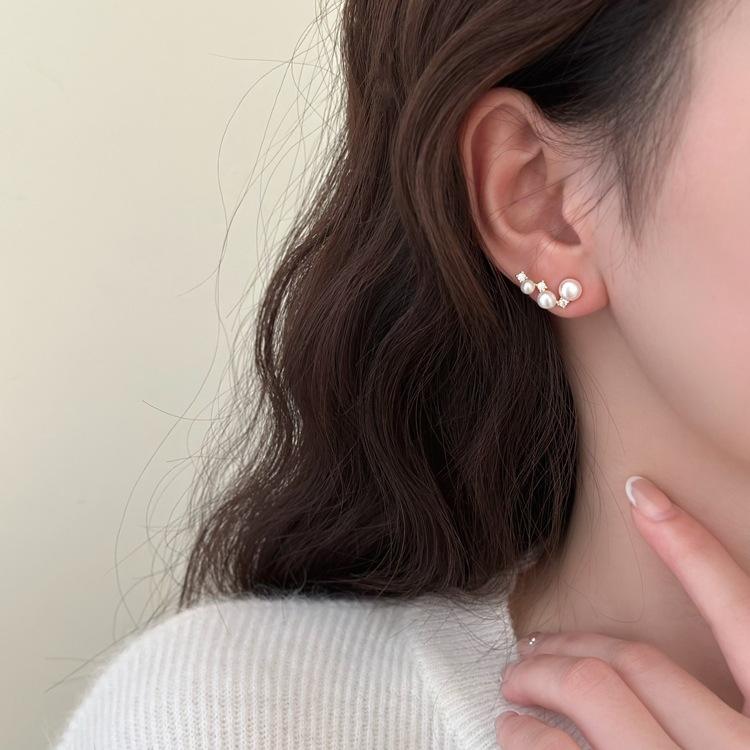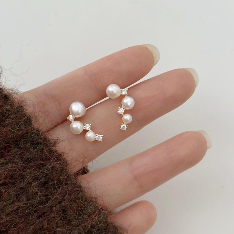 French High-End Elegant S925 Pure Silver Niche Design Pearl Shell Earrings with Exquisite Diamond Studded for Women