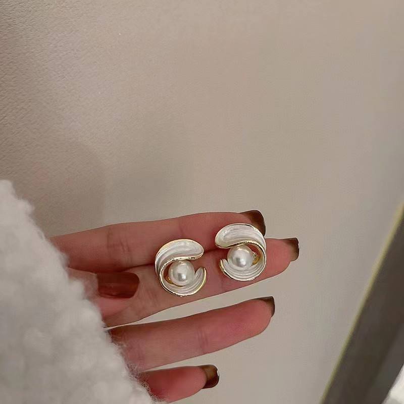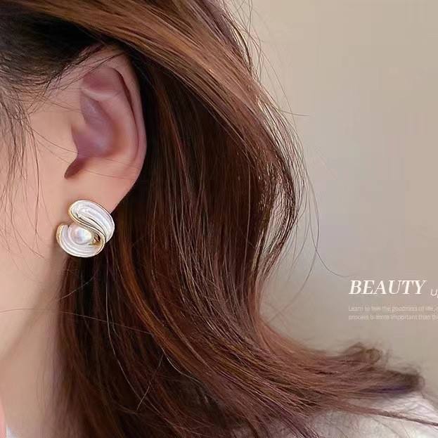 French High-End Retro Brushed Enamel Freshwater Pearl Earrings S925 Pure Silver Copper Gold-Plated Color Preservation