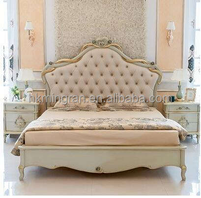 French Light Luxury Buckle Solid Wood Carved Bed European Bedroom Furniture Leather Double Bed Solid Wood Frame Furniture