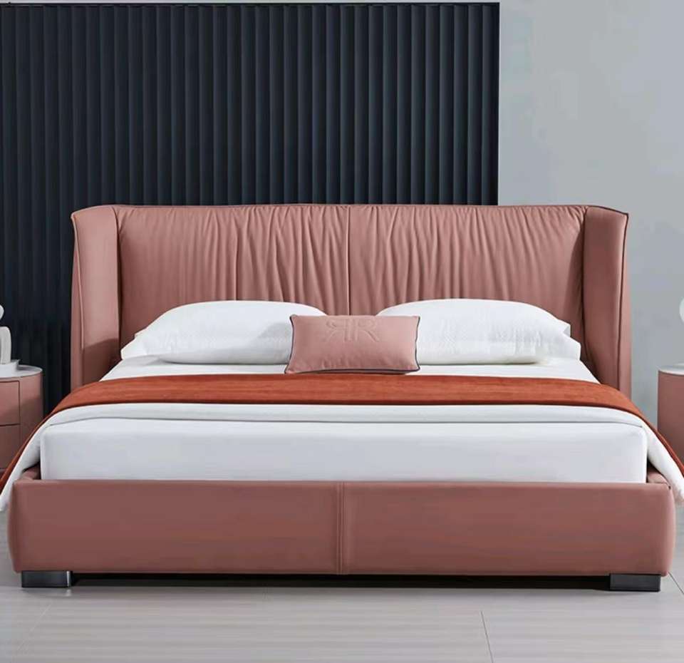 French Luxury Double Bed Set European Style Solid Wood Carved Soft-Packed Leather Smart Features for Master Bedroom Wedding Bed