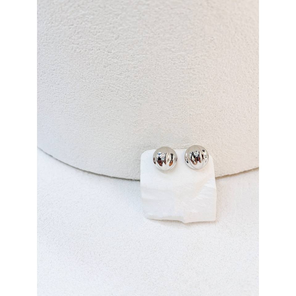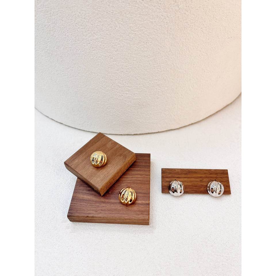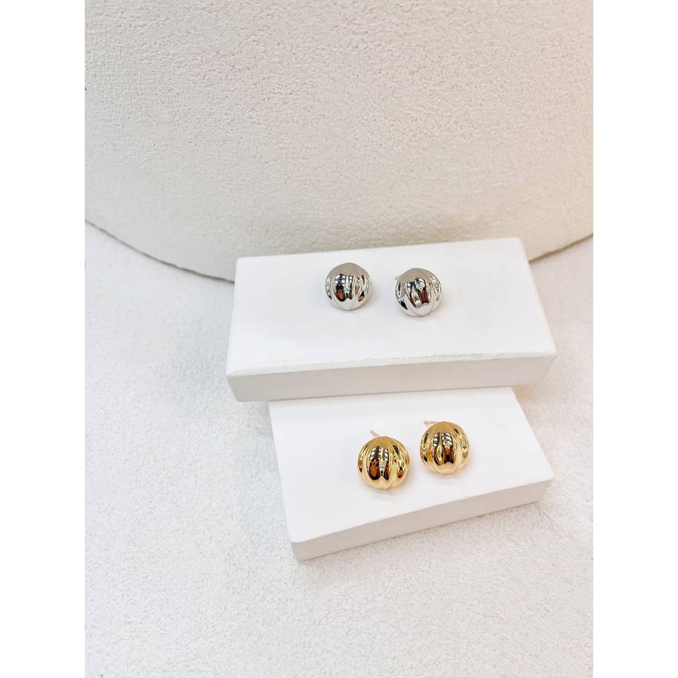 French Niche Retro Design S925 All-Over Sterling Silver White Gold Earrings Vintage Pumpkin Bead Drop Texture Fine Stud Vintage