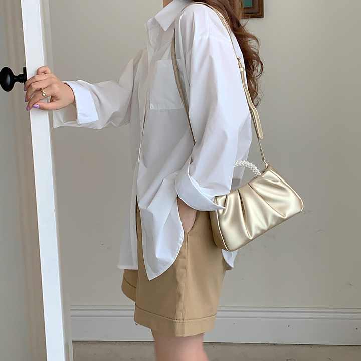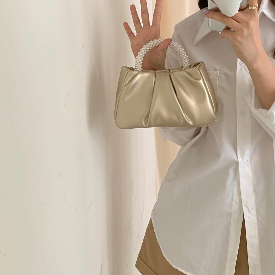 French Pleated PU Leather Shell Handbag Women Candy Pattern Polyester Lining High-End 'Gentle Wind' Crossbody Pearl Cloud Bag