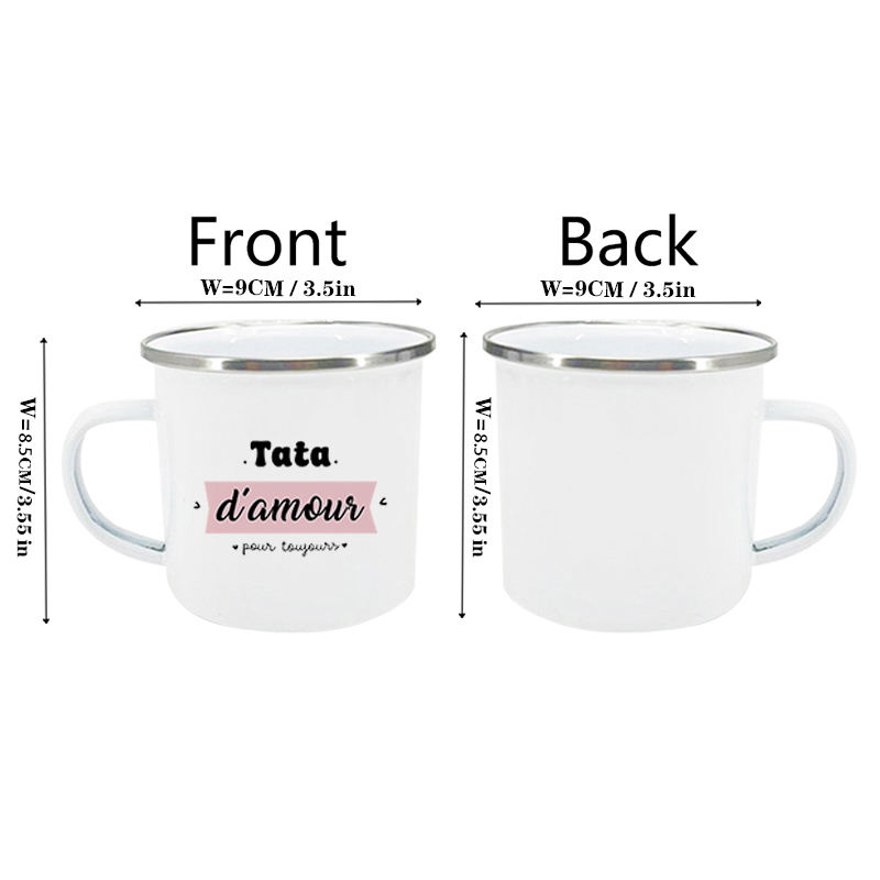 French Print Enamel Mug Creative Coffee Cups Drinks Water Milk Cup Enamel Mug Home Drinkware Gift for Grandma Grandpa Aunt Uncle