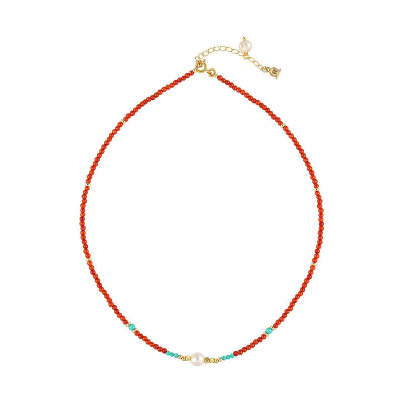 French Retro Bohemian Agate Necklace High-End Turquoise Beaded Collarbone Chain Natural Pearl Classic Number Pattern for Gift