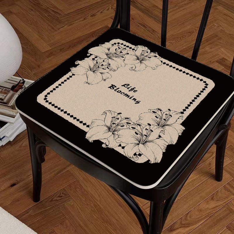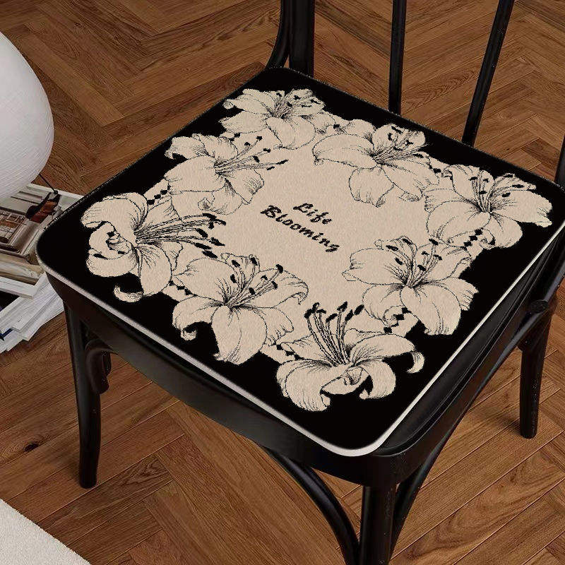 French Retro Chair Cushion With Floral Pattern Soft Polyester Seat Pad For Dining Office Winter Use