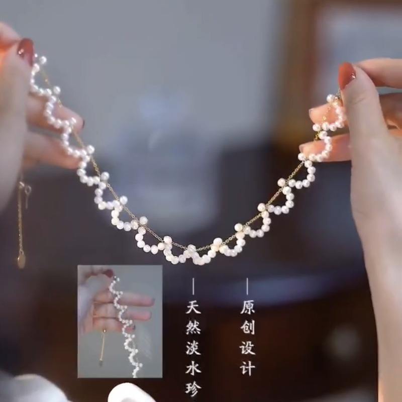 French Retro Handmade Necklace with Freshwater Pearls Simple Fashion Light Luxury Temperament Internet Famous Niche