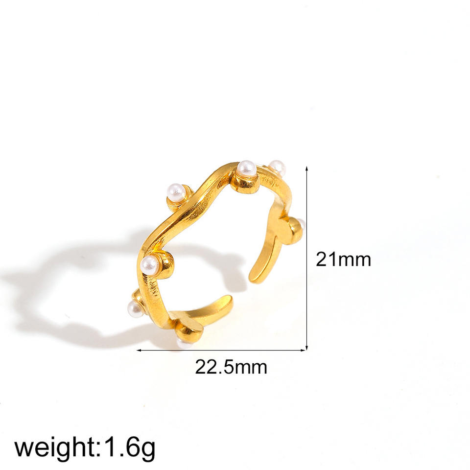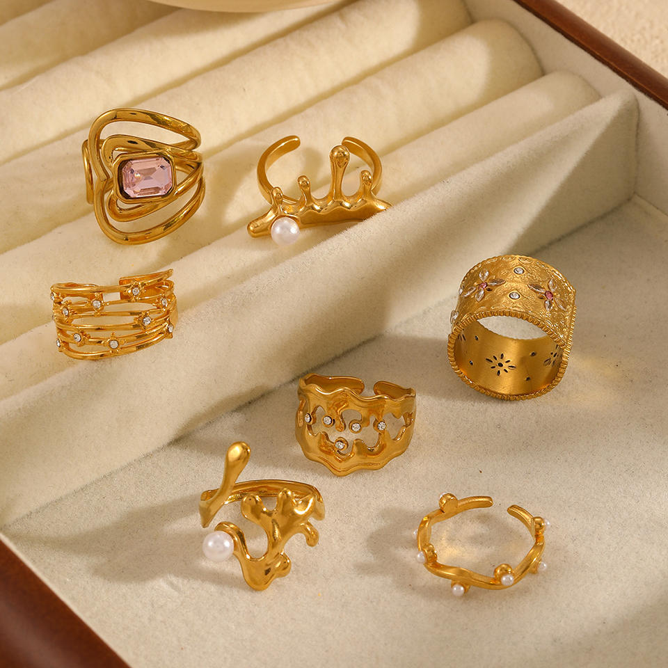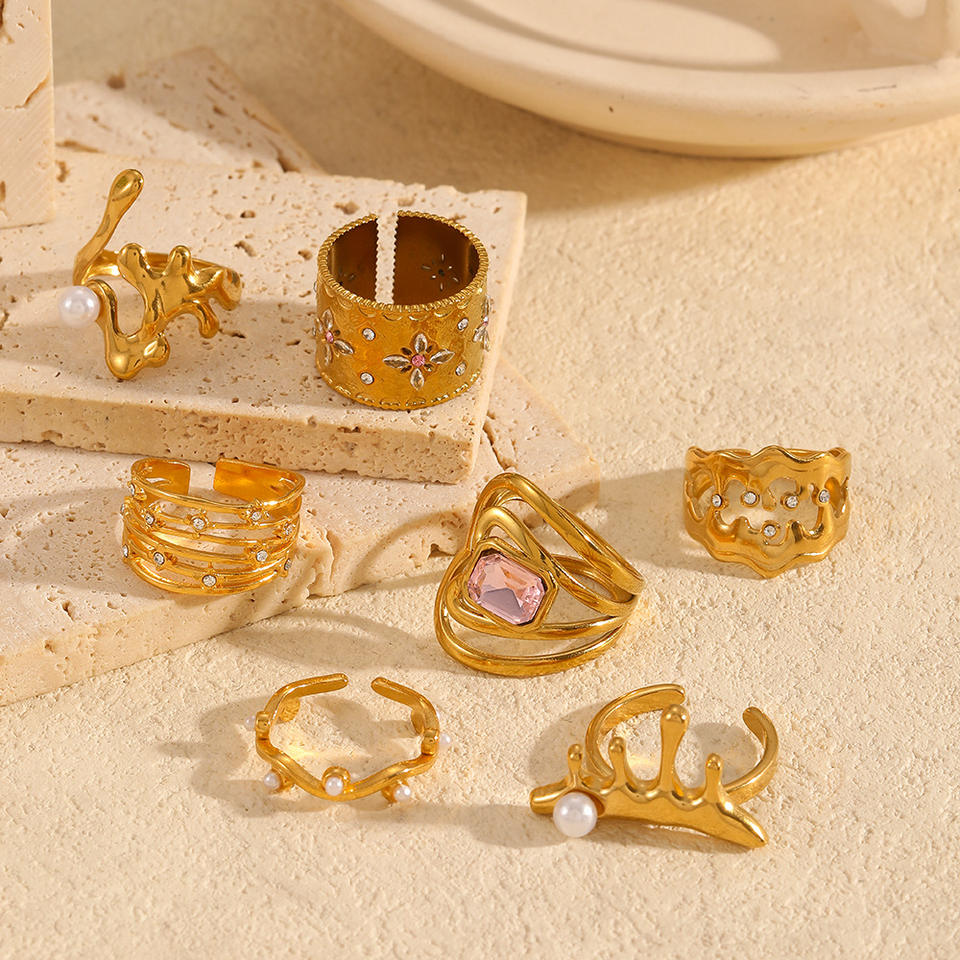 French Retro Openwork Titanium Steel Ring Women 18K Gold Plated Diamond Set Flower Design Everyday Wear Jewelry