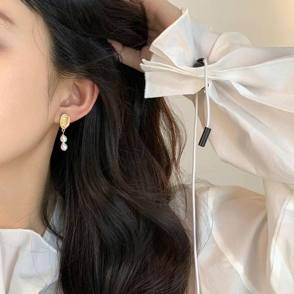 French Retro Silver Needle Earrings Pearl Girl's Natural Strong Light Baroque Pearls Simple Fashion Dangle Design