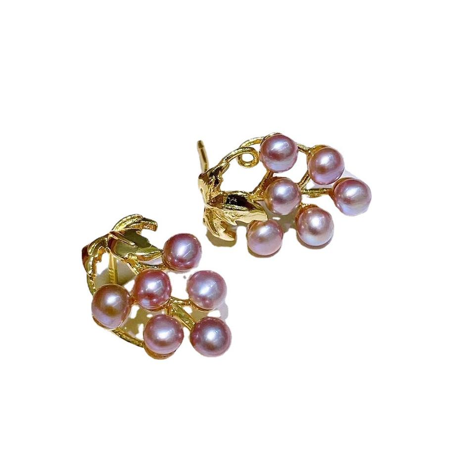 French Retro Style Light Luxury Purple Grape Freshwater Baby Pearl Earrings Niche Temperament